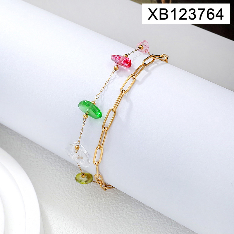 Level B Stainless Steel New Trendy Women Jewelry Two Layers Chain Golden Bracelet
