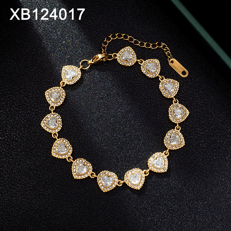 Level B Stainless Steel New Trendy Women Jewelry White Rhinestone Heart Golden Bracelet
