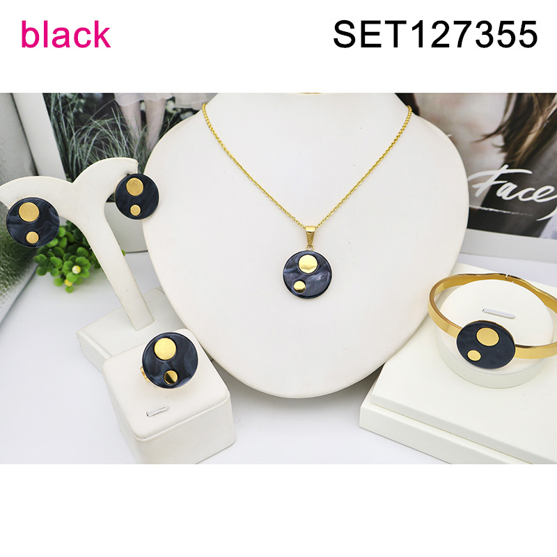 Level B Stainless Steel New Trendy Women Jewelry Black Round Resin Golden 4 pcs SET