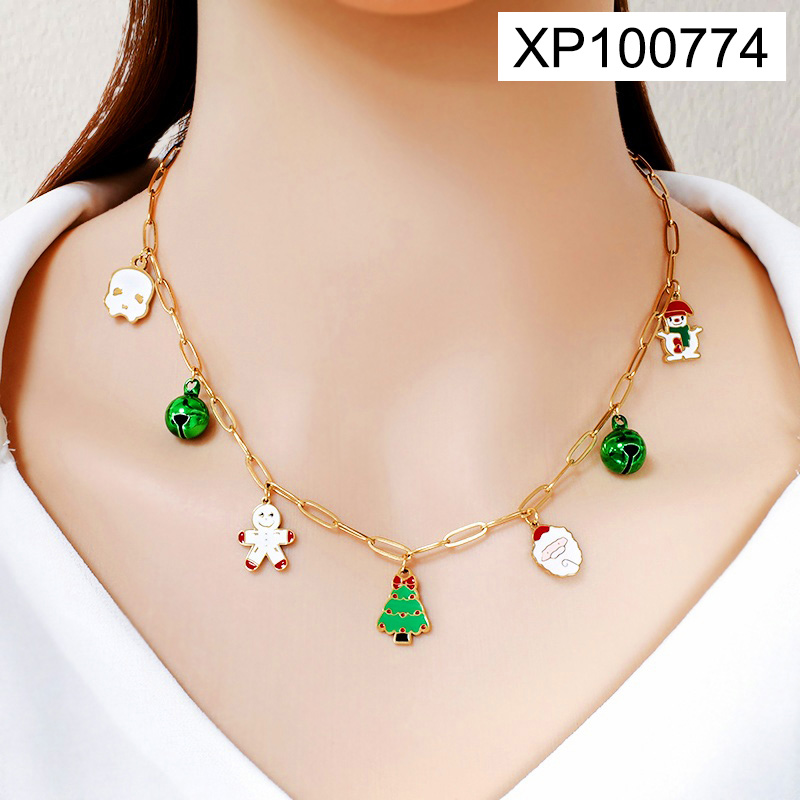 Level C Stainless Steel New Trendy Women Jewelry Drip Oil/Enamel Christmas Golden Pendant