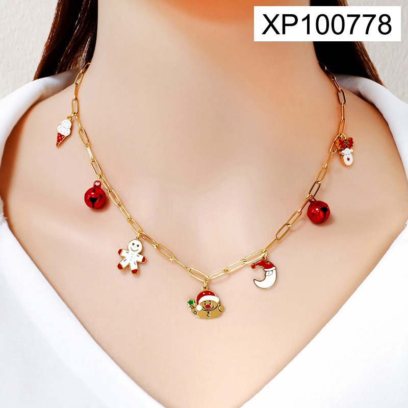 Level C Stainless Steel New Trendy Women Jewelry Drip Oil/Enamel Christmas Golden Pendant