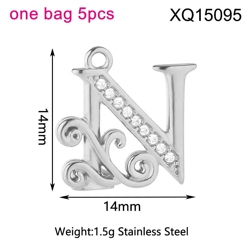 Level B Stainless Steel New Trendy Jewelry Letter N Steel color DIY Charms