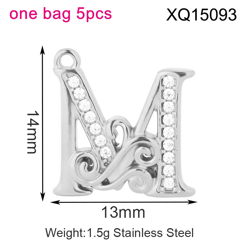 Level B Stainless Steel New Trendy Jewelry Letter M Steel color DIY Charms