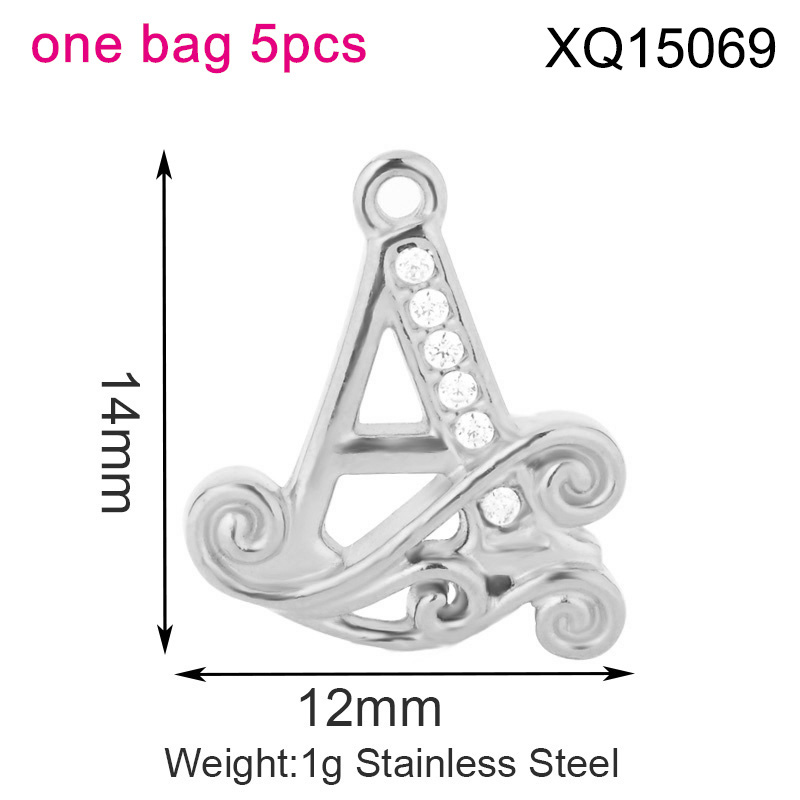 Level B Stainless Steel New Trendy Jewelry Letter A Steel color DIY Charms