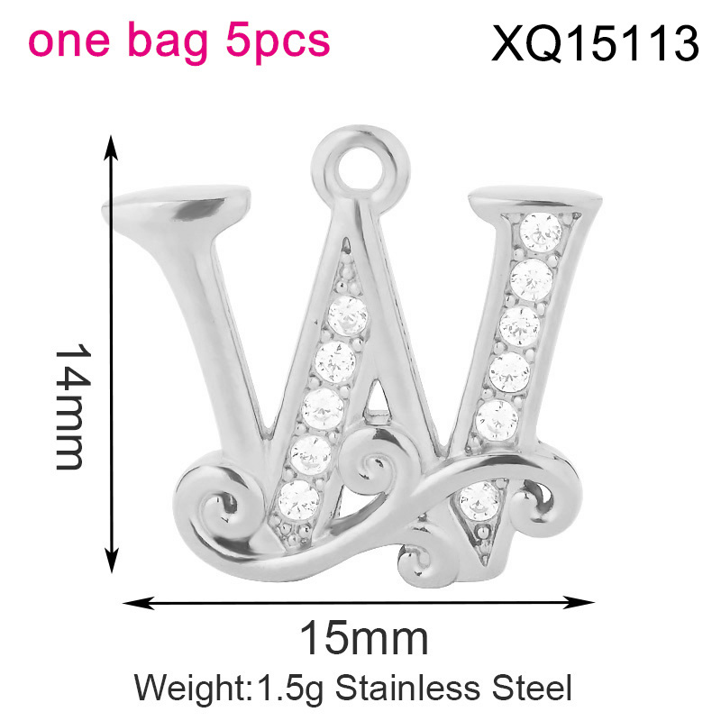 Level B Stainless Steel New Trendy Jewelry Letter W Steel color DIY Charms