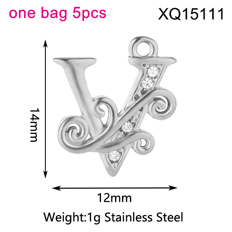 Level B Stainless Steel New Trendy Jewelry Letter V Steel color DIY Charms