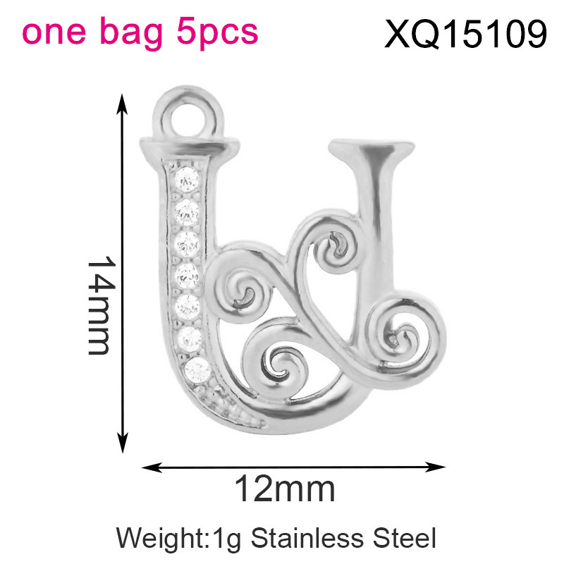 Level B Stainless Steel New Trendy Jewelry Letter U Steel color DIY Charms