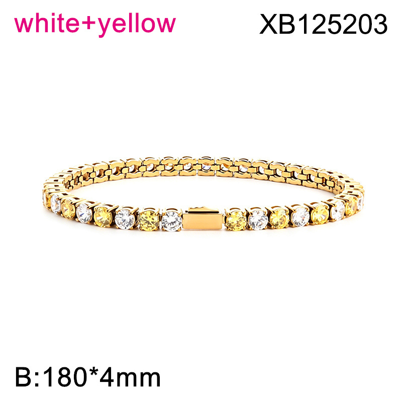 Level B Hot Sale Women Jewelry Golden White+Yellow Round 316 Stainless Steel Cubic Zirconia Tennis Bracelet
