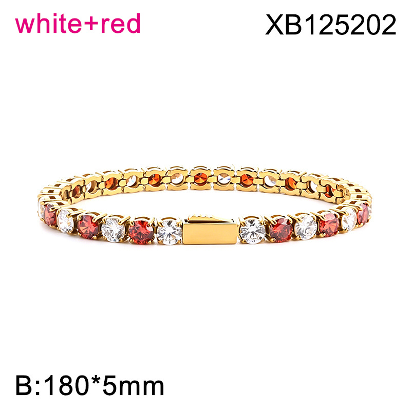 Level B Hot Sale Women Jewelry Golden White+Red Round 316 Stainless Steel Cubic Zirconia Tennis Bracelet
