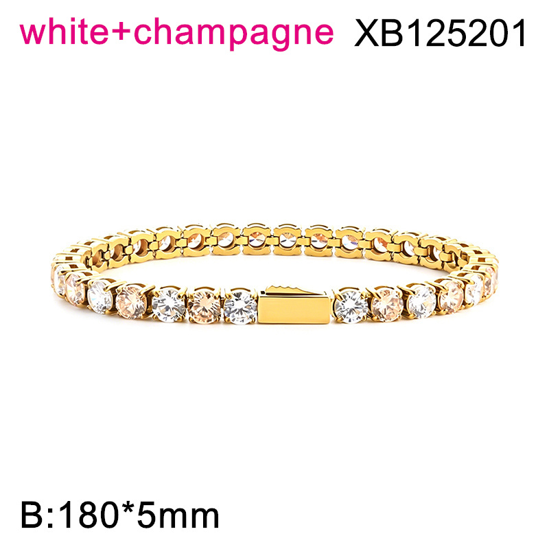 Level B Hot Sale Women Jewelry Golden White+Champagne Round 316 Stainless Steel Cubic Zirconia Tennis Bracelet