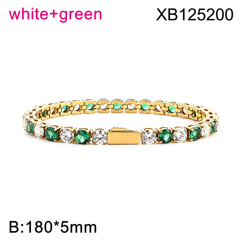 Level B Hot Sale Women Jewelry Golden White+Green Round 316 Stainless Steel Cubic Zirconia Tennis Bracelet