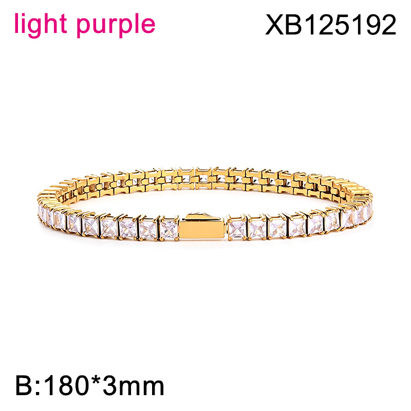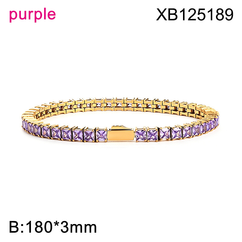 Level B Hot Sale Women Jewelry Golden Purple Square 316 Stainless Steel Cubic Zirconia Tennis Bracelet