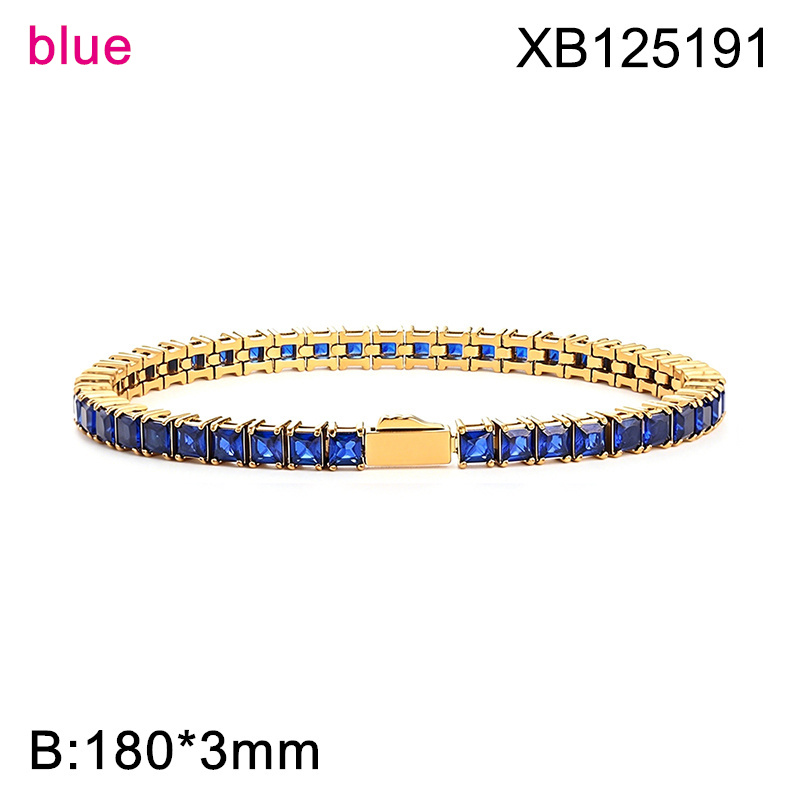 Level B Hot Sale Women Jewelry Golden Blue Square 316 Stainless Steel Cubic Zirconia Tennis Bracelet