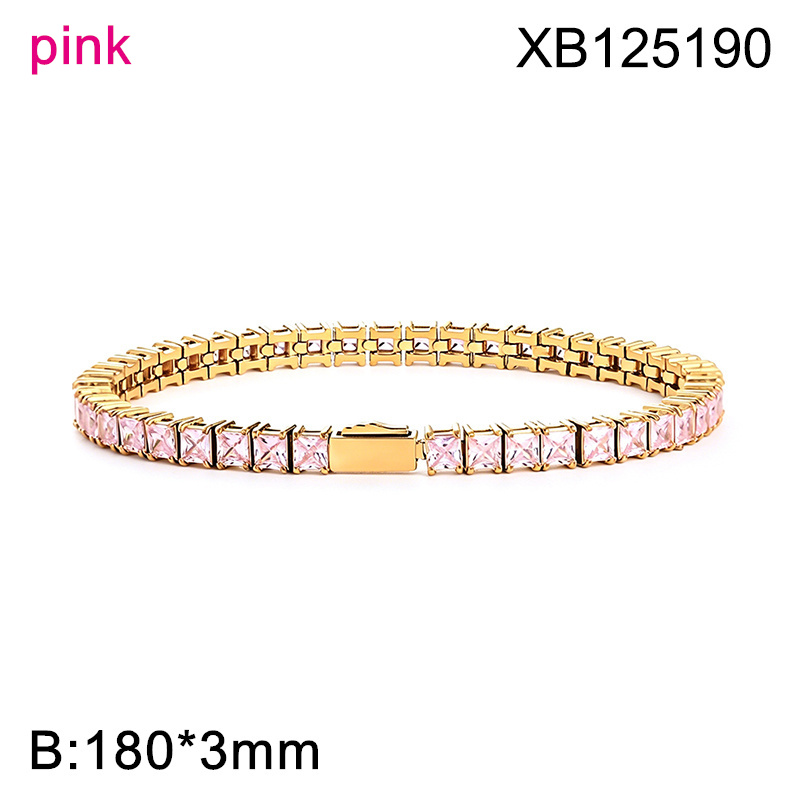 Level B Hot Sale Women Jewelry Golden Pink Square 316 Stainless Steel Cubic Zirconia Tennis Bracelet