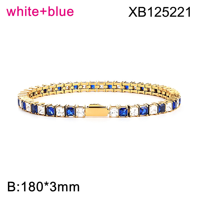 Level B Hot Sale Women Jewelry Golden White+Blue Square 316 Stainless Steel Cubic Zirconia Tennis Bracelet
