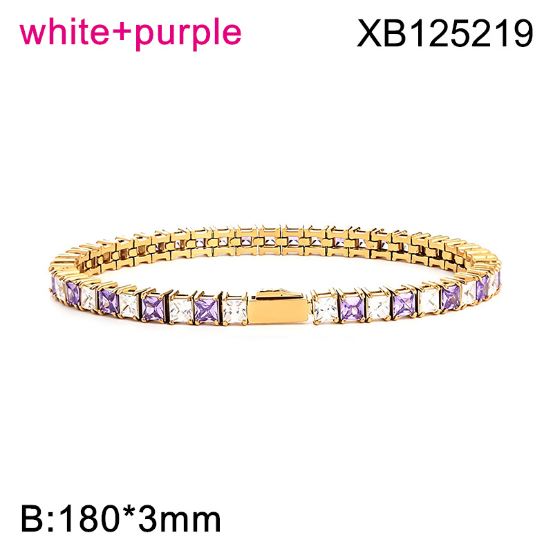 Level B Hot Sale Women Jewelry Golden White+Purple Square 316 Stainless Steel Cubic Zirconia Tennis Bracelet