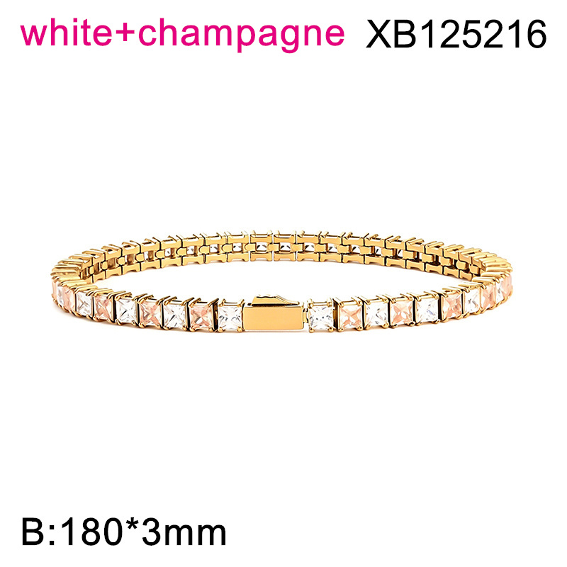 Level B Hot Sale Women Jewelry Golden White+Champagne Square 316 Stainless Steel Cubic Zirconia Tennis Bracelet