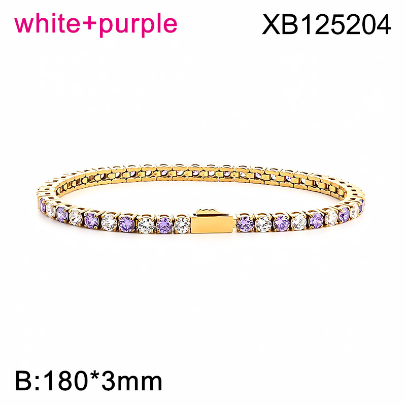 Level B Hot Sale Women Jewelry Golden White+Purple Round 316 Stainless Steel Cubic Zirconia Tennis Bracelet