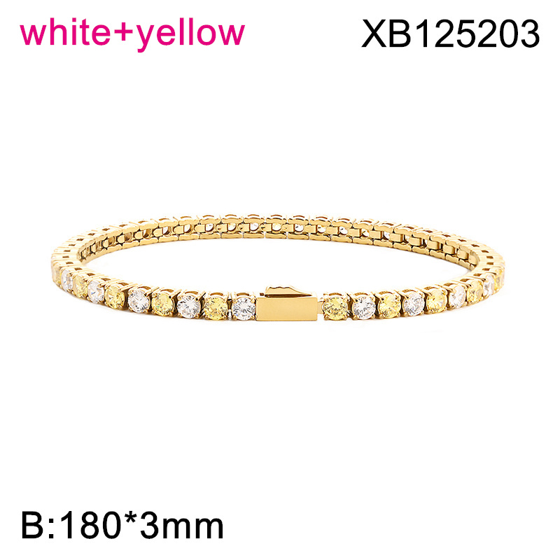 Level B Hot Sale Women Jewelry Golden White+Yellow Round 316 Stainless Steel Cubic Zirconia Tennis Bracelet