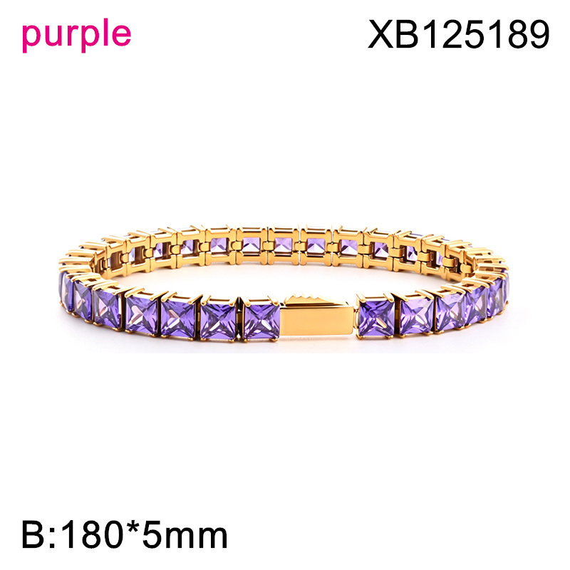 Level B Hot Sale Women Jewelry Golden Purple Square 316 Stainless Steel Cubic Zirconia Tennis Bracelet