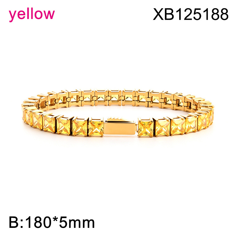 Level B Hot Sale Women Jewelry Golden Yellow Square 316 Stainless Steel Cubic Zirconia Tennis Bracelet