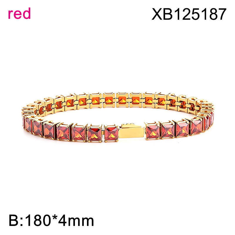 Level B Hot Sale Women Jewelry Golden Red Square 316 Stainless Steel Cubic Zirconia Tennis Bracelet