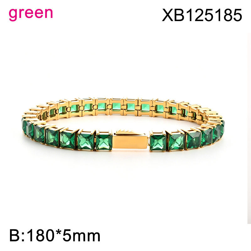 Level B Hot Sale Women Jewelry Golden Green Square 316 Stainless Steel Cubic Zirconia Tennis Bracelet