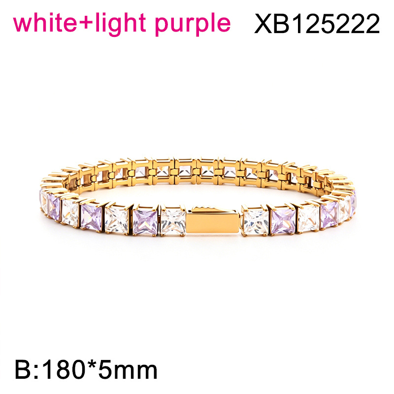 Level B Hot Sale Women Jewelry Golden White+Light purple Square 316 Stainless Steel Cubic Zirconia Tennis Bracelet