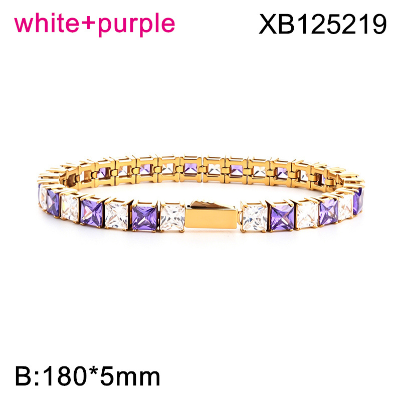 Level B Hot Sale Women Jewelry Golden White+Purple Square 316 Stainless Steel Cubic Zirconia Tennis Bracelet