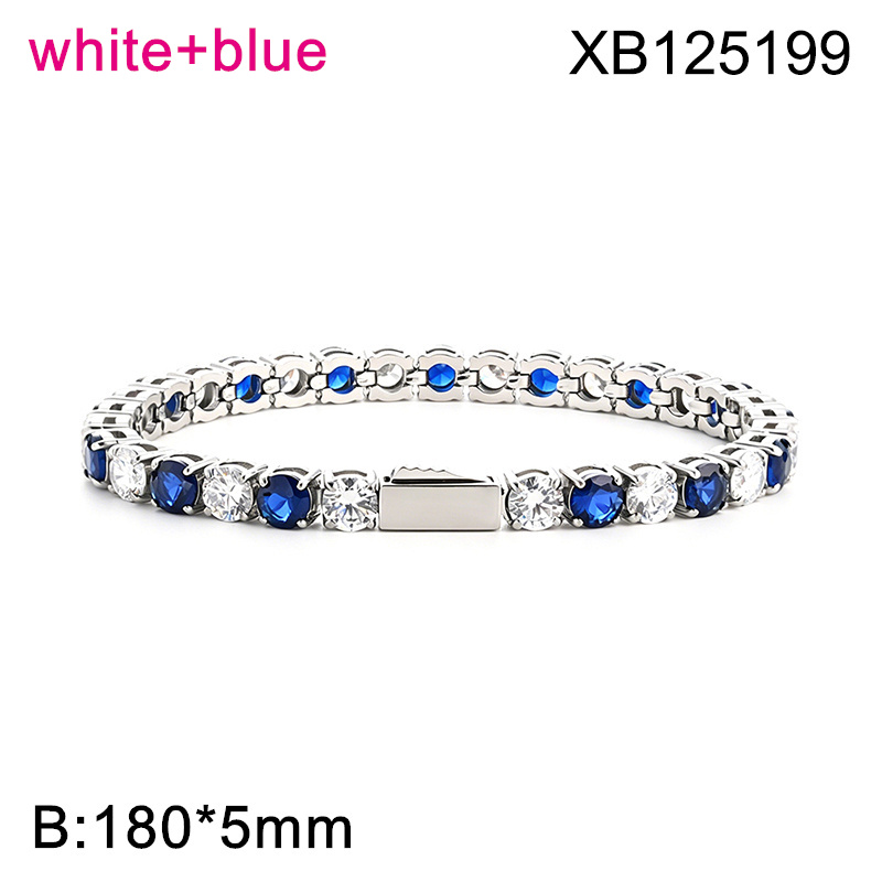 Level B Hot Sale Women Jewelry Steel color White+Blue Round 316 Stainless Steel Cubic Zirconia Tennis Bracelet