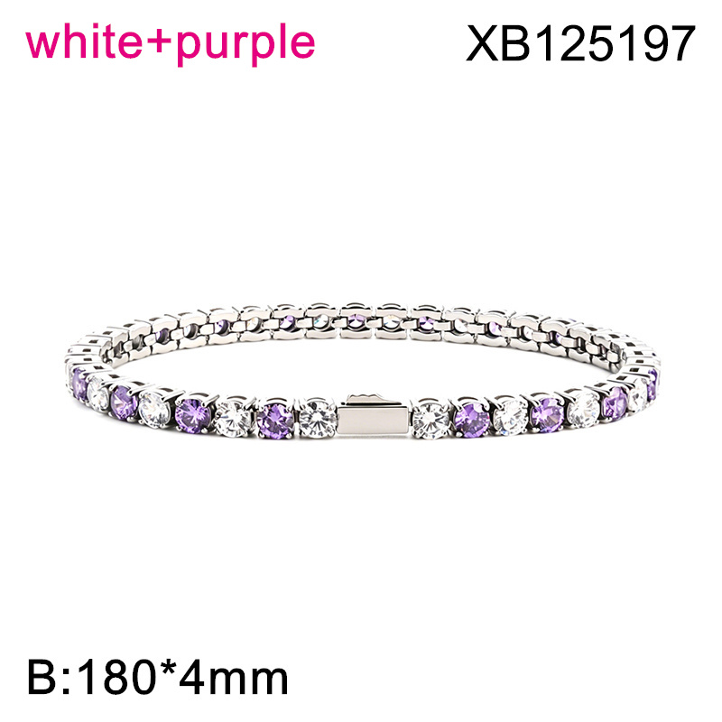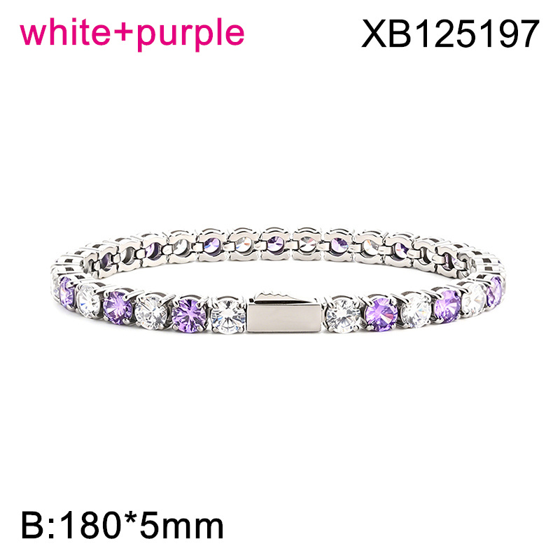 Level B Hot Sale Women Jewelry Steel color White+Purple Round 316 Stainless Steel Cubic Zirconia Tennis Bracelet