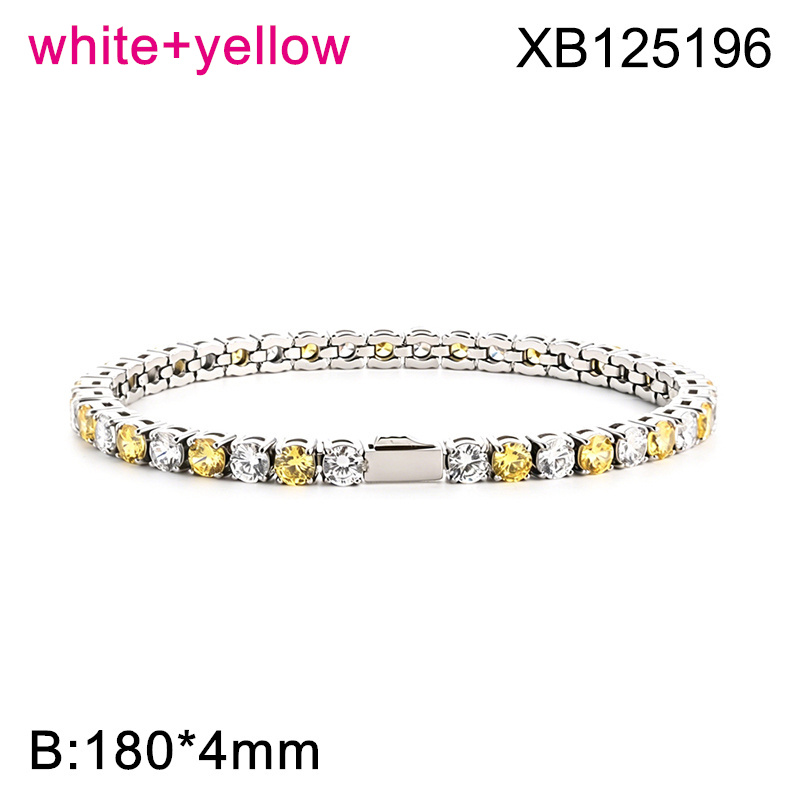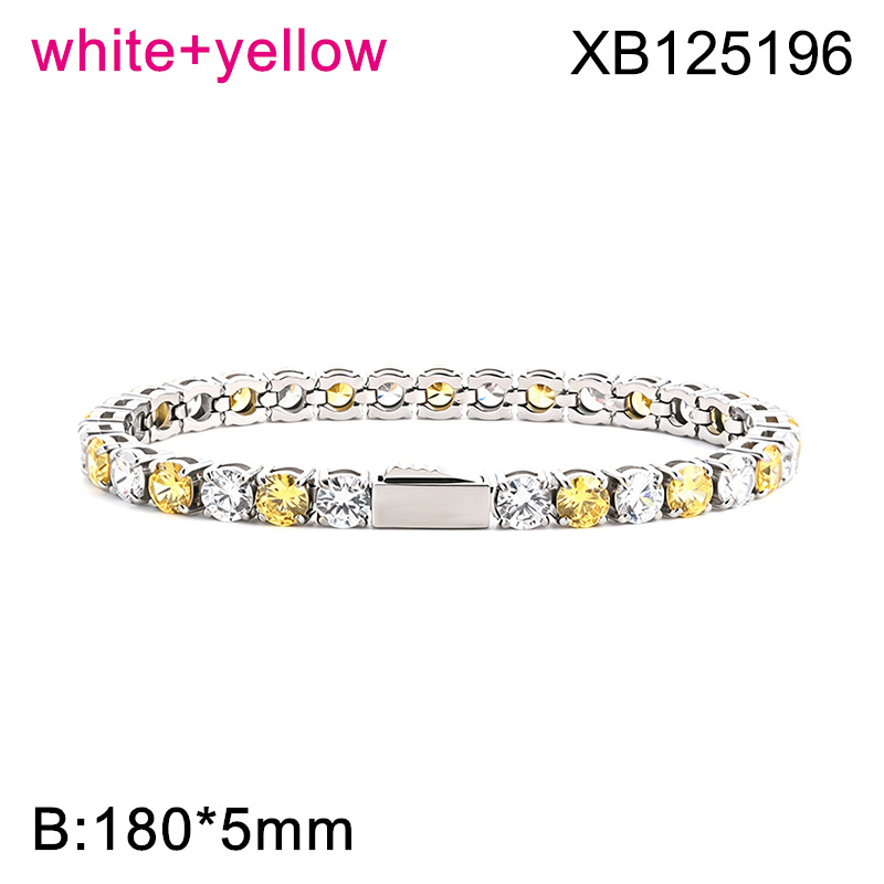 Level B Hot Sale Women Jewelry Steel color White+Yellow Round 316 Stainless Steel Cubic Zirconia Tennis Bracelet
