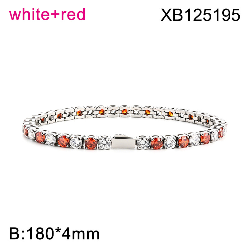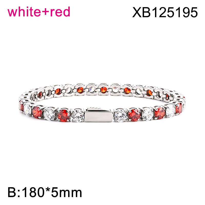 Level B Hot Sale Women Jewelry Steel color White+Red Round 316 Stainless Steel Cubic Zirconia Tennis Bracelet