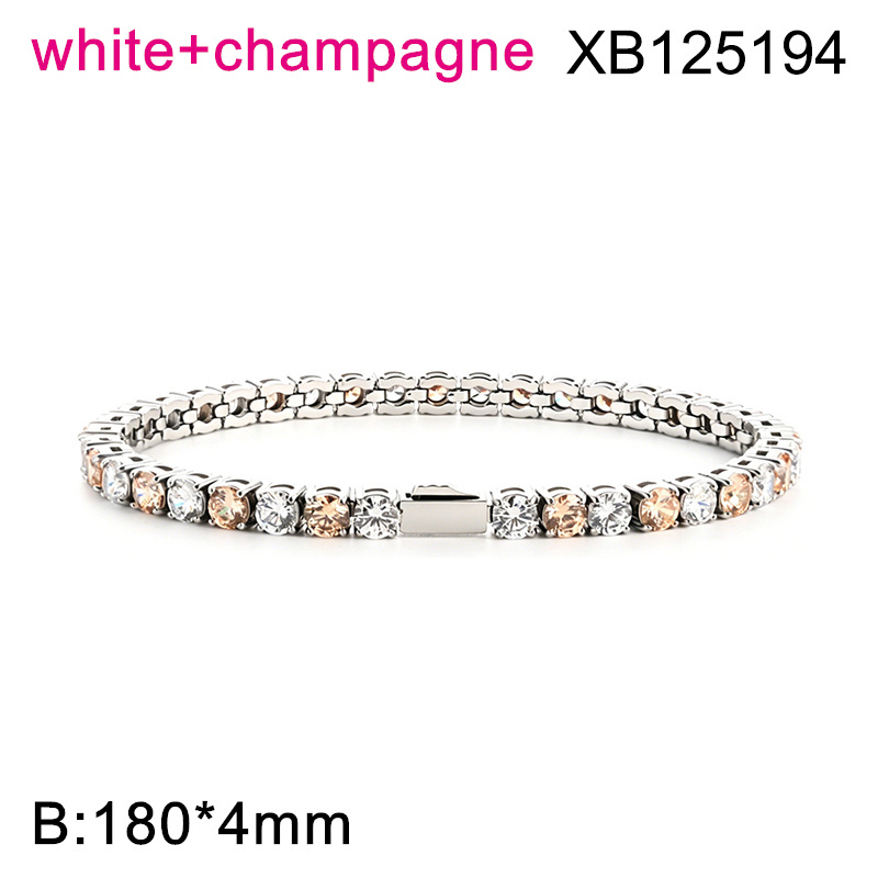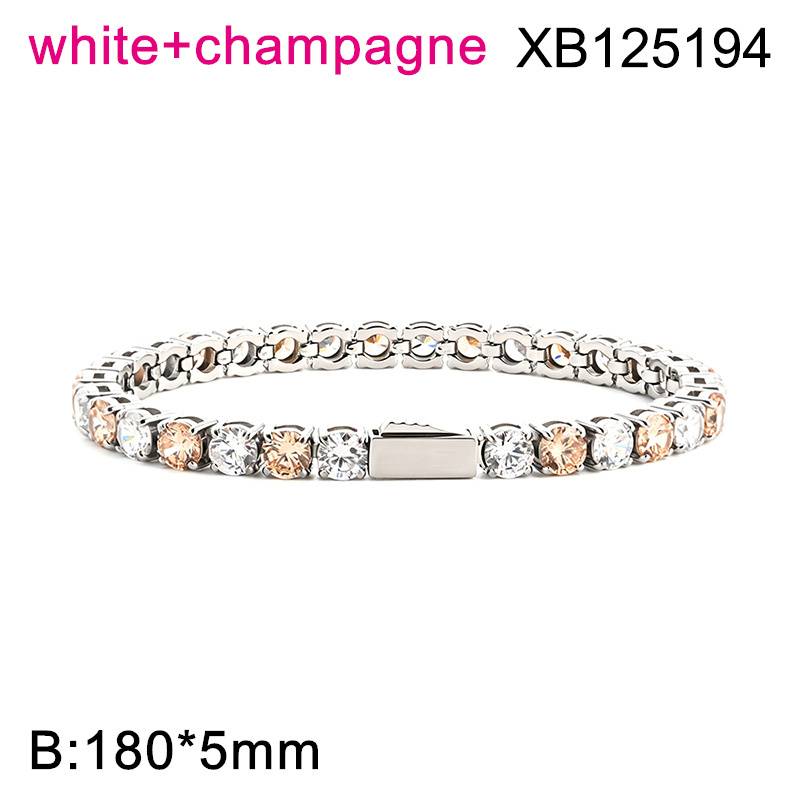 Level B Hot Sale Women Jewelry Steel color White+Champagne Round 316 Stainless Steel Cubic Zirconia Tennis Bracelet