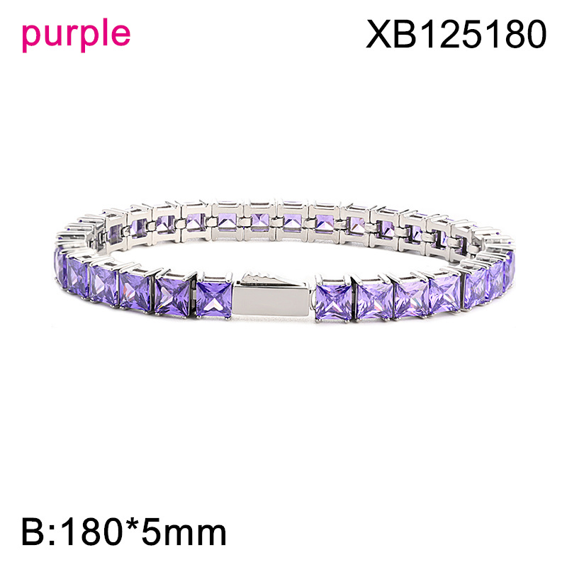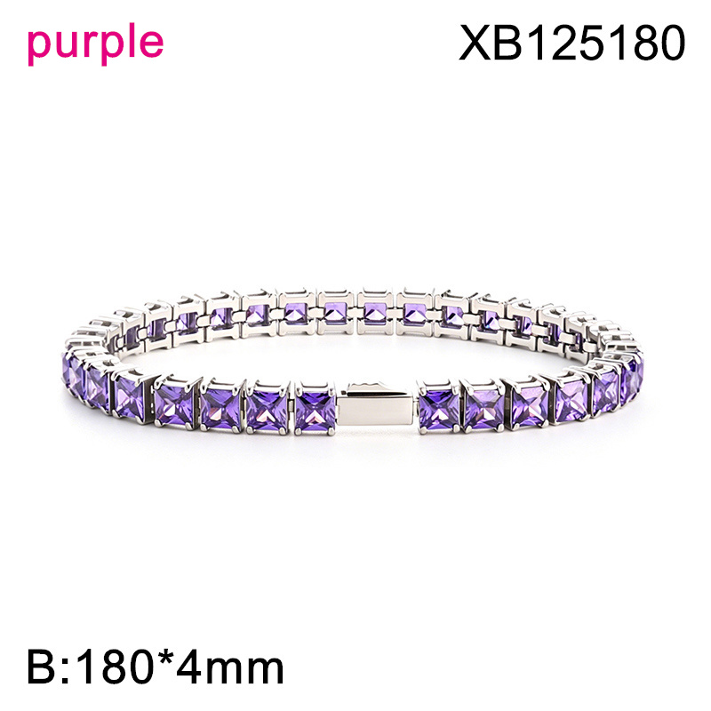 Level B Hot Sale Women Jewelry Steel color Purple Square 316 Stainless Steel Cubic Zirconia Tennis Bracelet