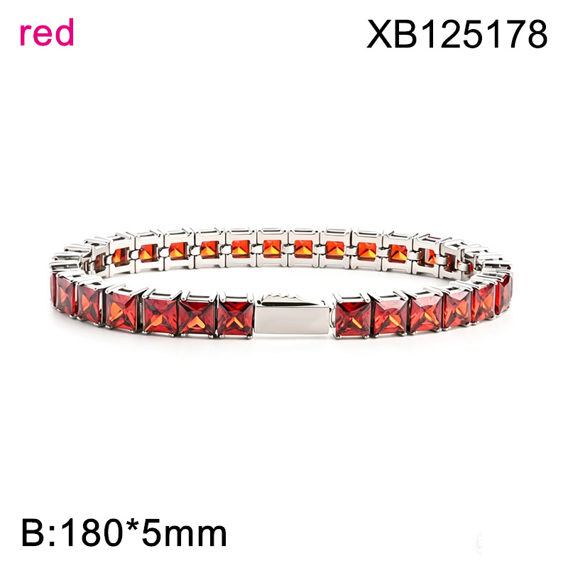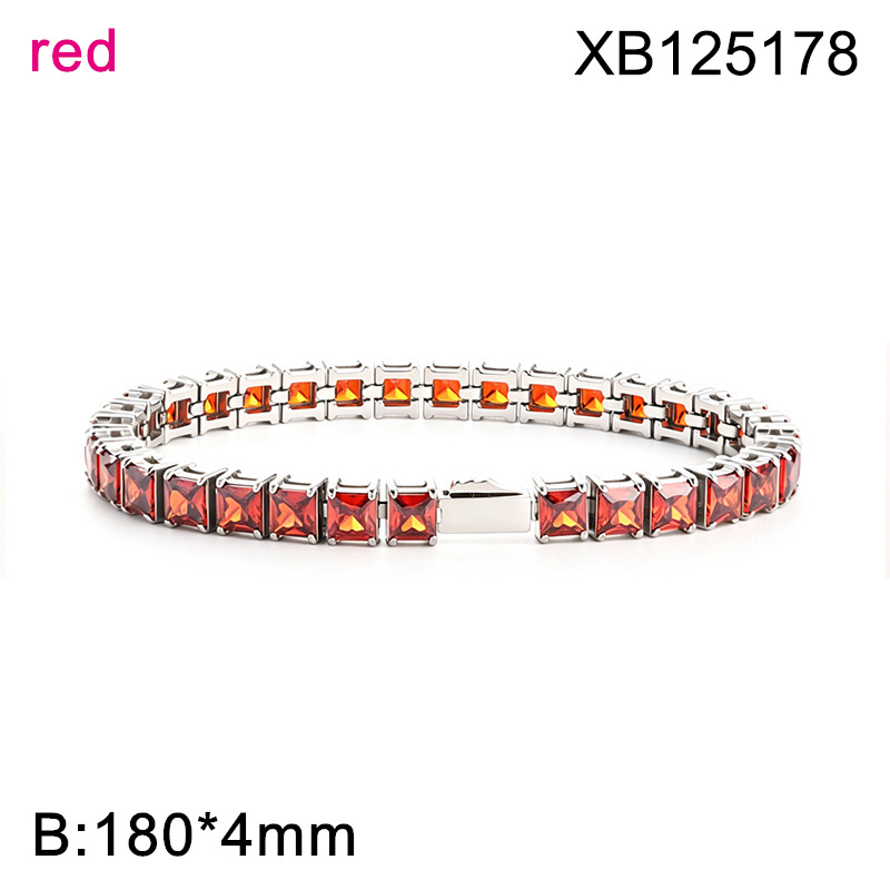 Level B Hot Sale Women Jewelry Steel color Red Square 316 Stainless Steel Cubic Zirconia Tennis Bracelet