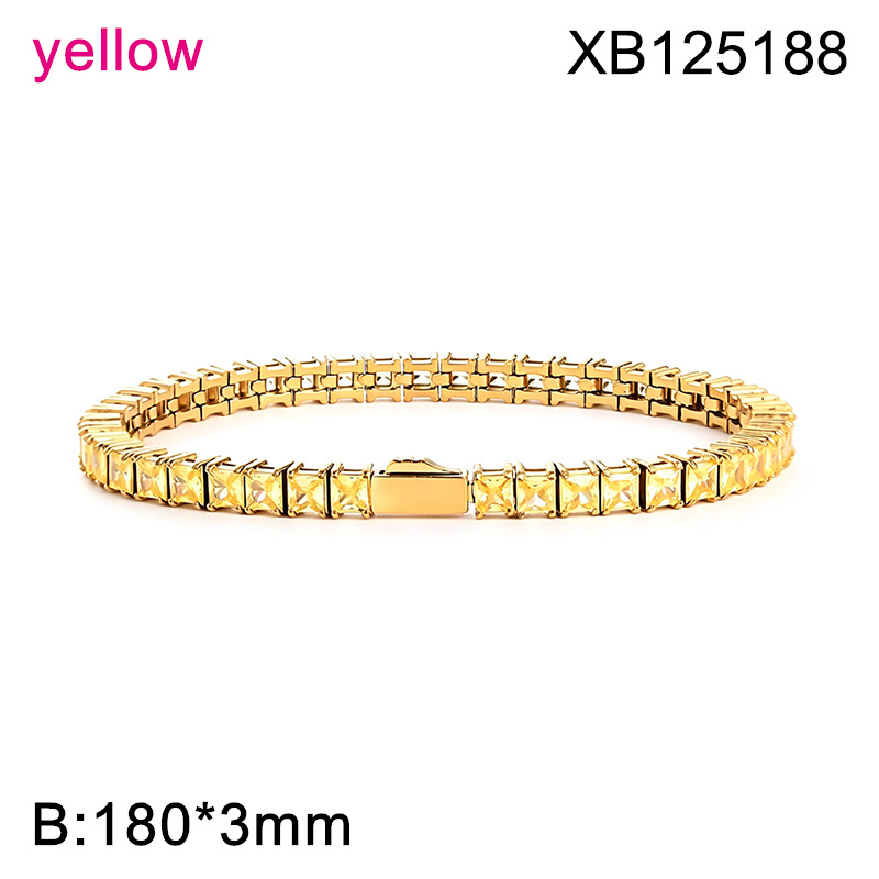 Level B Hot Sale Women Jewelry Golden Yellow Square 316 Stainless Steel Cubic Zirconia Tennis Bracelet