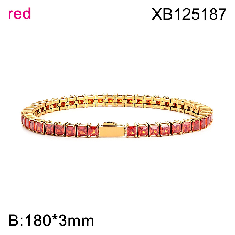 Level B Hot Sale Women Jewelry Golden Red Square 316 Stainless Steel Cubic Zirconia Tennis Bracelet
