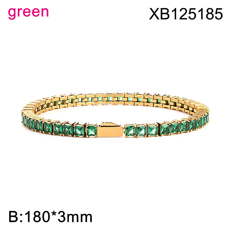 Level B Hot Sale Women Jewelry Golden Green Square 316 Stainless Steel Cubic Zirconia Tennis Bracelet