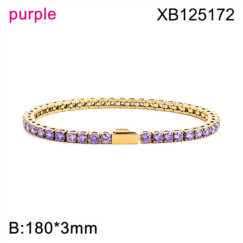 Level B Hot Sale Women Jewelry Golden Purple Round 316 Stainless Steel Cubic Zirconia Tennis Bracelet