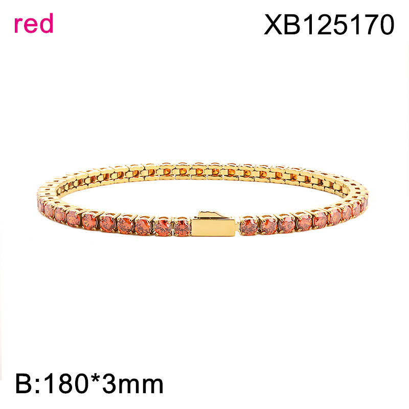 Level B Hot Sale Women Jewelry Golden Red Round 316 Stainless Steel Cubic Zirconia Tennis Bracelet