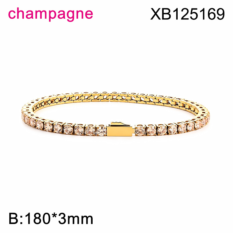 Level B Hot Sale Women Jewelry Golden Champagne Round 316 Stainless Steel Cubic Zirconia Tennis Bracelet