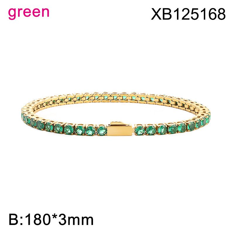 Level B Hot Sale Women Jewelry Golden Green Round 316 Stainless Steel Cubic Zirconia Tennis Bracelet
