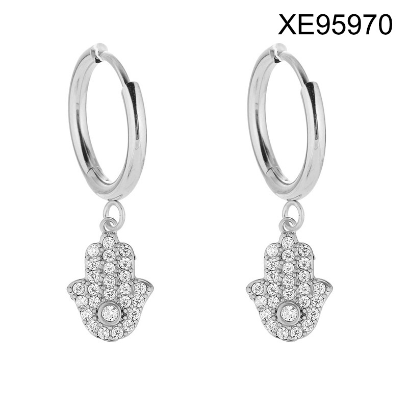 Level A Stainless Steel New Trendy Women Jewelry Studded Round White Zircon Steel color Hoop Earrings