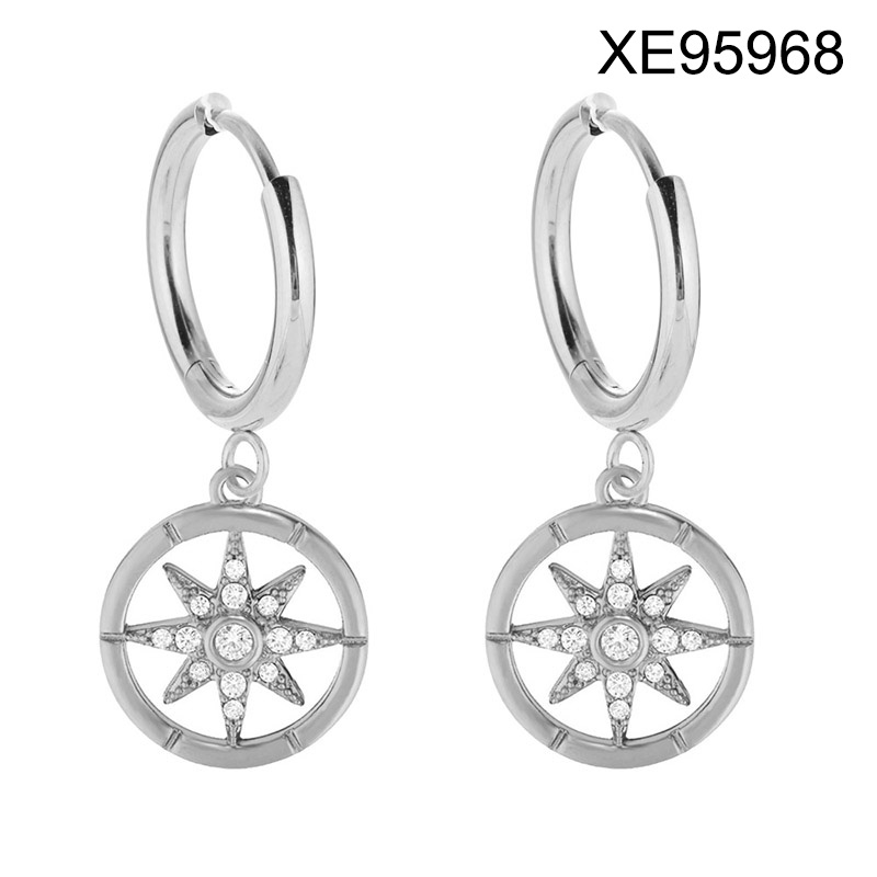 Level B Stainless Steel New Trendy Women Jewelry Eight-Pointed Star Steel color Hoop Earrings