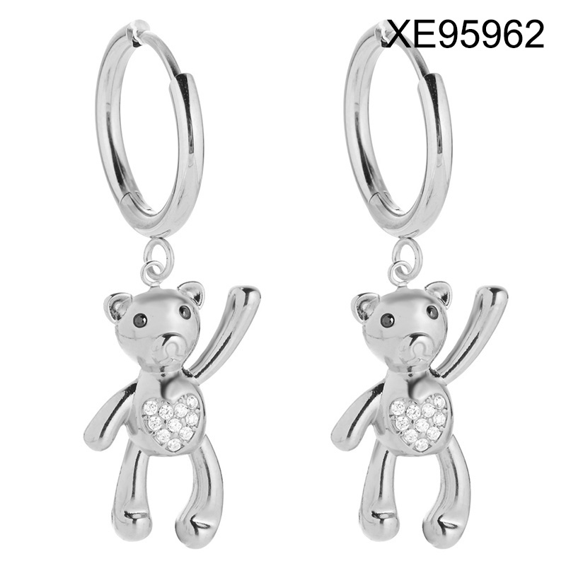 Level B Stainless Steel New Trendy Women Jewelry Animal Bear Steel color Hoop Earrings