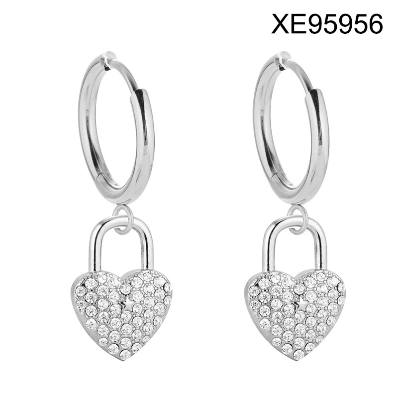 Level B Stainless Steel New Trendy Women Jewelry Lock Heart Steel color Valentine's Day Hoop Earrings