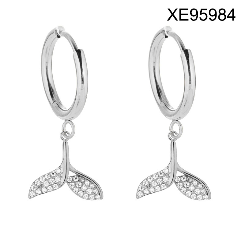 Level B Stainless Steel New Trendy Women Jewelry Summer beach Animal Fish Tail Steel color Hoop Earrings