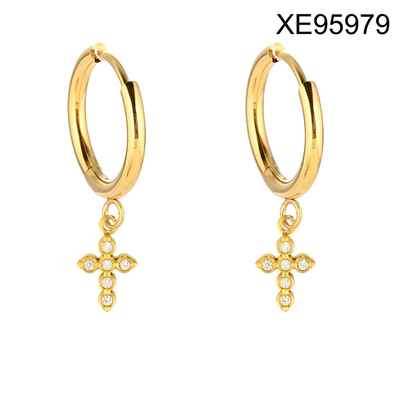 Level B Stainless Steel New Trendy Women Jewelry Cross Golden Hoop Earrings
