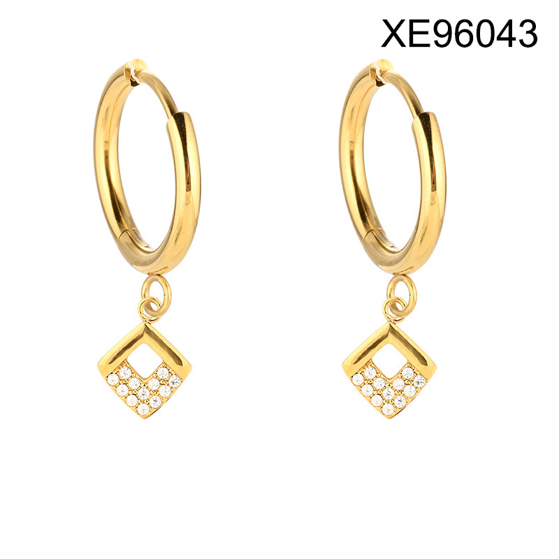 Level B Stainless Steel New Trendy Women Jewelry Rhombus Golden Hoop Earrings